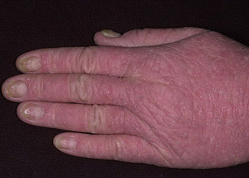 - Эритродермия – покраснение кожи, шелушение. Присутствует сильный зуд.